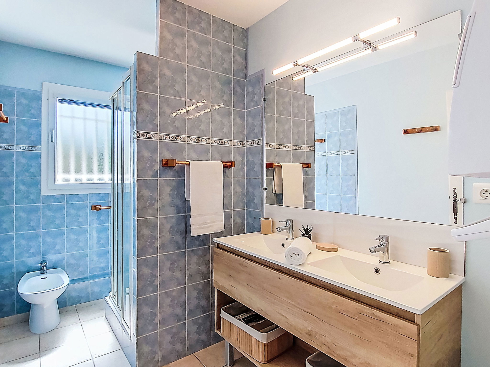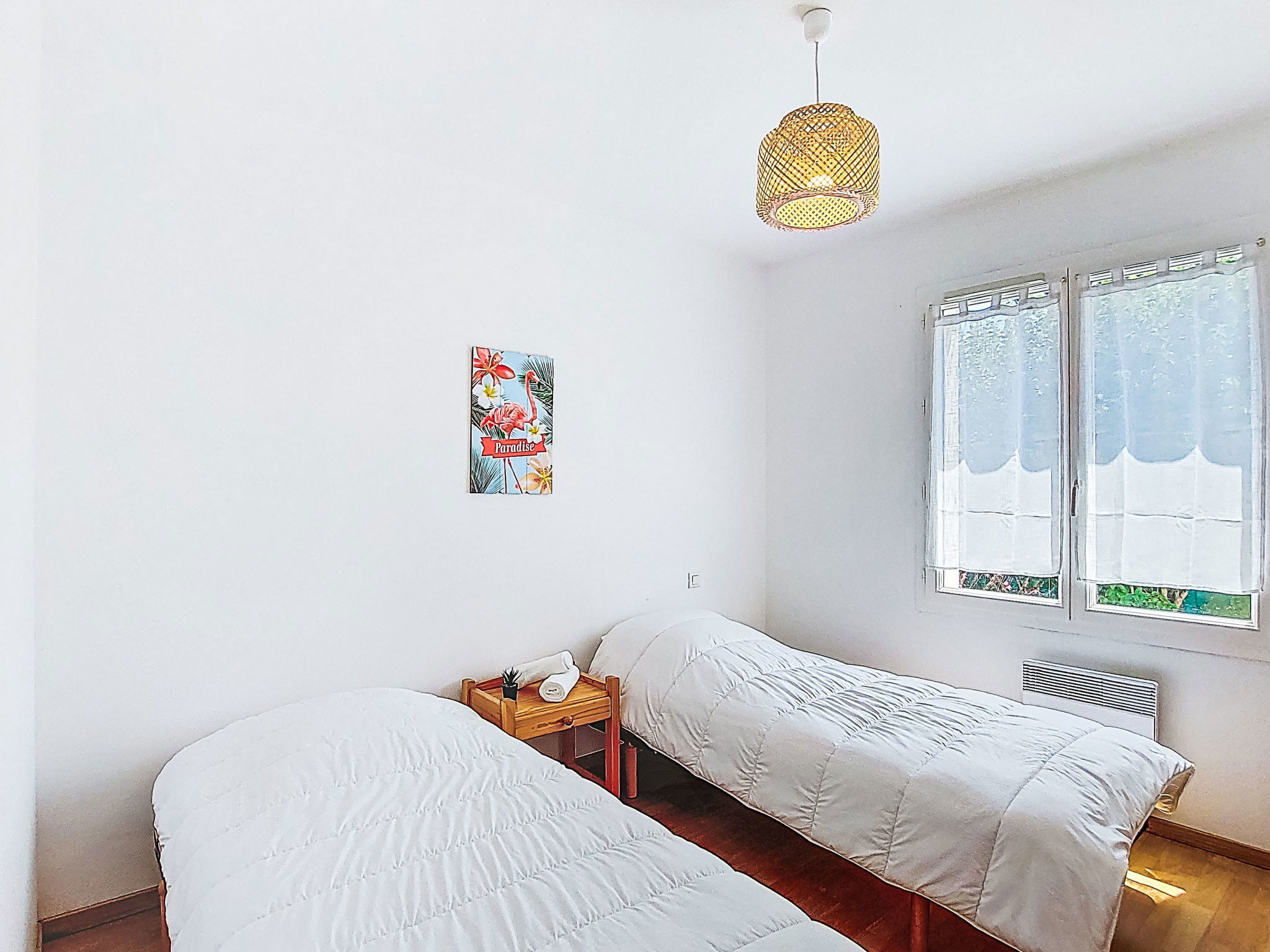 4-Zimmer-Haus 100 m2. Komfortabel und schön eingerichtet: Wohn-/Esszimmer mit Kabel-TV (Flachbildschirm). Ausgang zur Terrasse. 1 Zimmer mit 1 franz. Bett (1 x 140 cm, Länge 190 cm). 1 Zimmer mit 1 franz. Bett (1 x 140 cm, Länge 190 cm). 1 Kinderzimmer mit 2 Betten (90 cm, Länge 190 cm) (90 cm). Offene Küche (4 Kochplatten, Backofen, Geschirrspüler, Toaster, Wasserkocher, Mikrowelle, Grill). Dusche, sep. WC. E-Heizung. Terrasse 18 m2. Terrassenmöbel, Gartengrill, Liegestühle (2). Zur Verfügung: Waschmaschine, Kinderhochstuhl, Haartrockner. Internet (WLAN, extra). Parkplatz (1 Auto). Bitte beachten: Nichtraucher-Haus. Rauchmelder. Inserat einer Privatperson nach Artikel 155, IV, CGI. 1714000026927