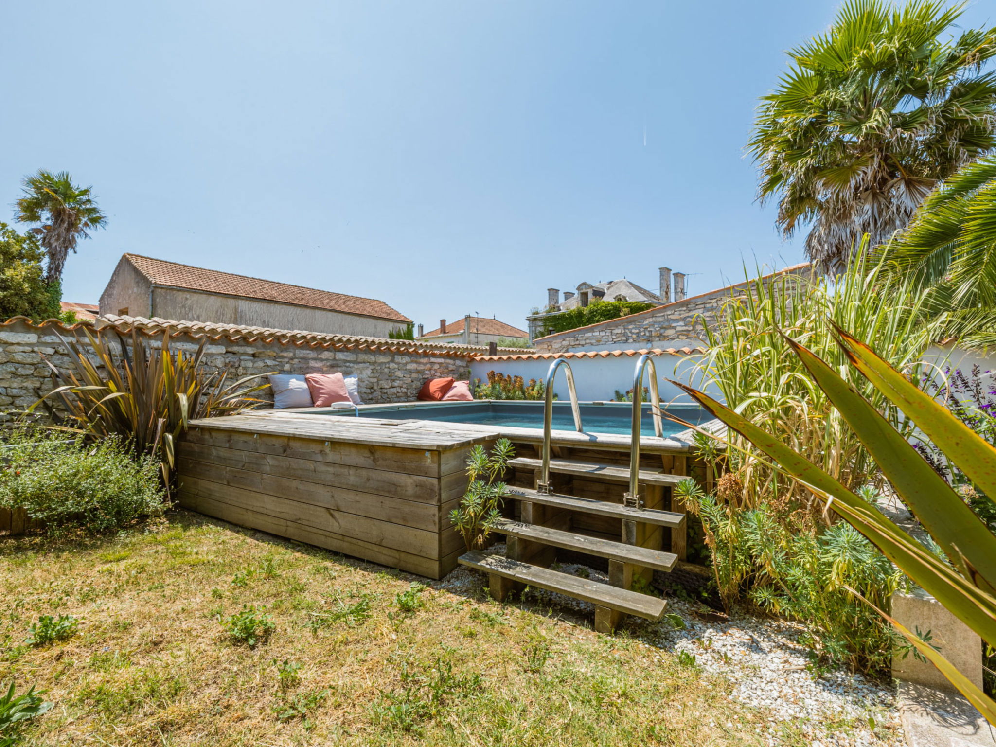 Sehr schönes Reihenhaus "Le cocon". Im Ortszentrum von Saint Pierre d'Oléron, zentrale, ruhige Lage, 2 km vom Waldrand, 5 km vom Meer, 5 km vom Strand. Zur Alleinbenutzung: kleiner, gepflegter Garten (eingezäunt), Schwimmbad eckig (4 x 4 m, 16 m Durchmesser, saisonale Verfügbarkeit: 01.Apr. - 01.Okt.). Parkplatz beim Haus. Einkaufsgeschäft, Lebensmittelgeschäft 50 m, Supermarkt 1.5 km, Restaurant, Bar, Bäckerei, Café, Fußgängerzone, Fahrradverleih 50 m, Bushaltestelle "Gare routière 17310" 800 m, Sandstrand "La Biroire" 5 km. Sporthafen 5.8 km, Golfplatz (9 Loch) 10 km, Surfschule 5 km, Segelschule 5.8 km. Nahe gelegene Sehenswürdigkeiten: Centre aquatique Iléo 9 km, Phare de Chassiron 16 km, Port de la Cotinière 6 km, Corderie Royale Rochefort 45 km, La Rochelle 77 km.